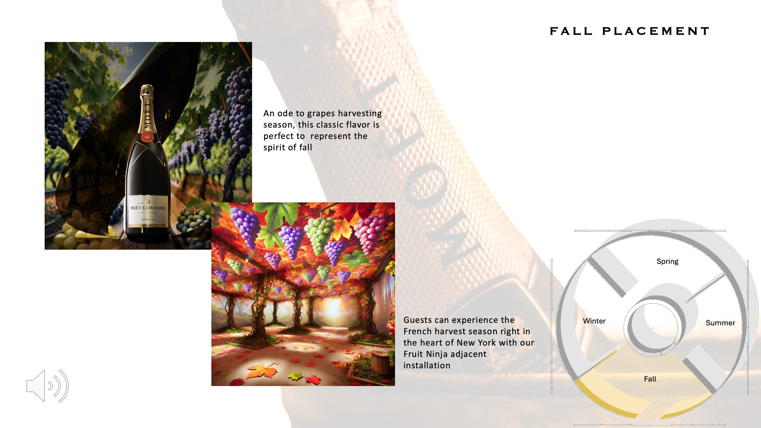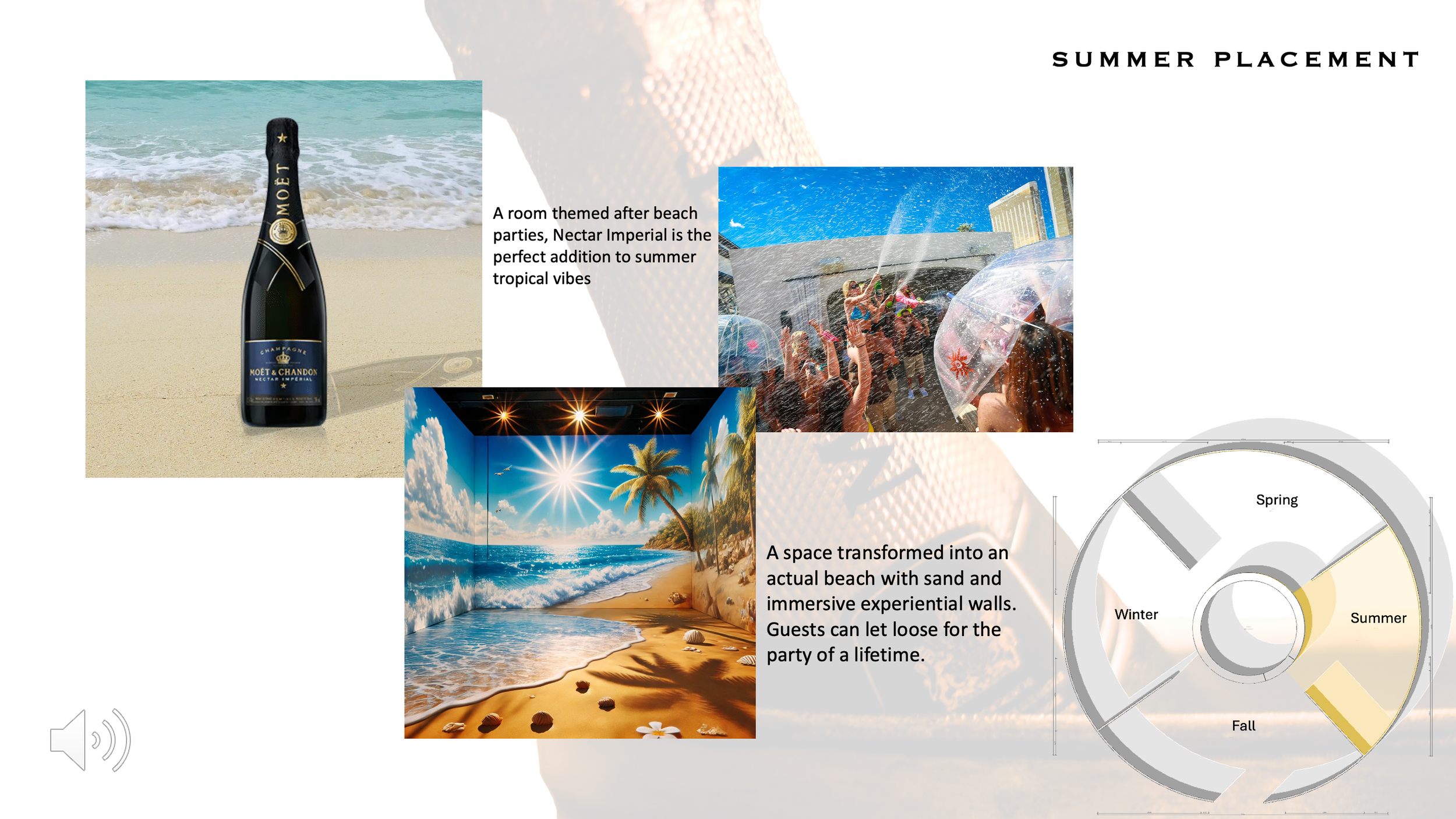 The theme for the exhibit revolves around how Moët & Chandon enhances celebrations through each season, with a focus on the unique beauty, mood, and traditions that different times of the year bring.